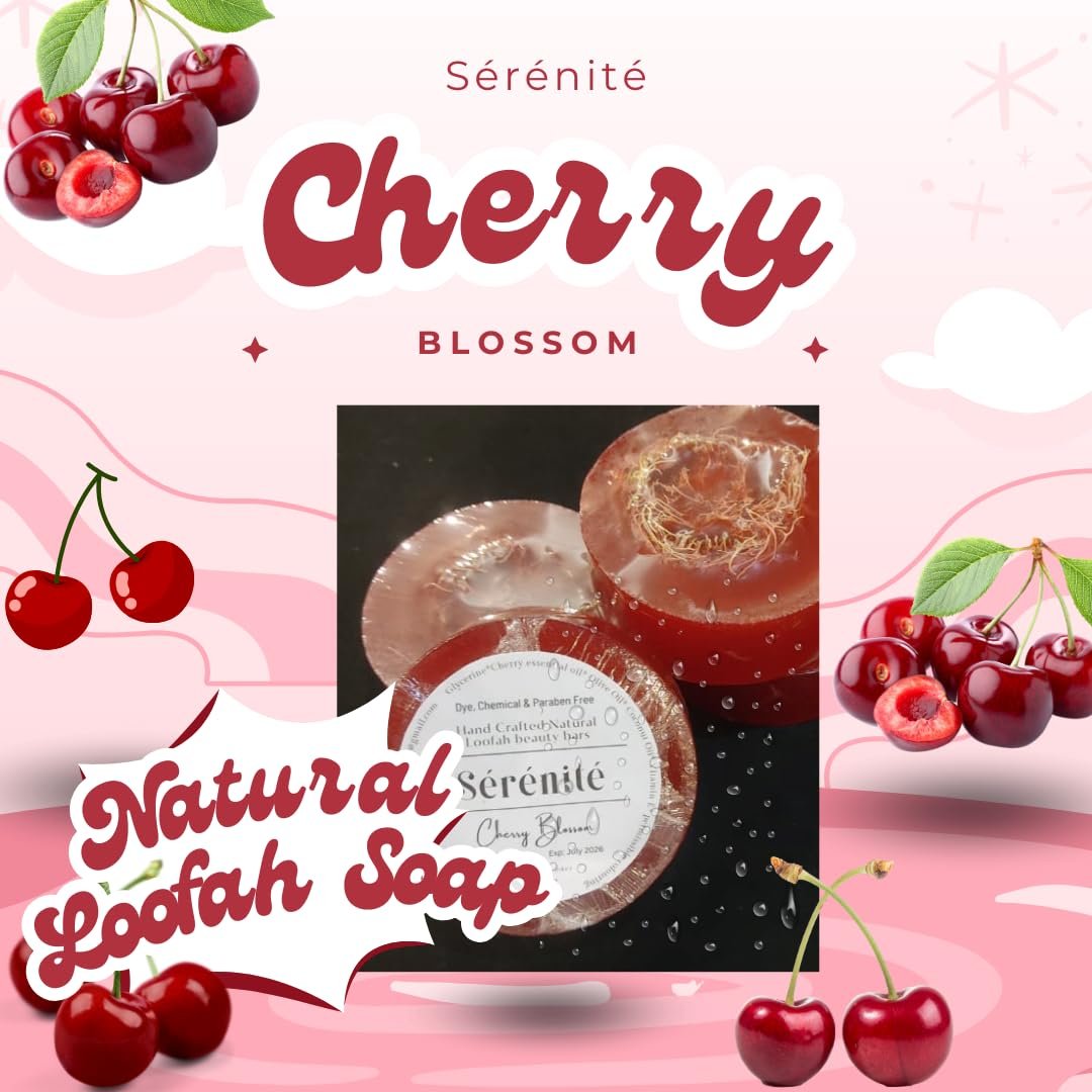 SÉRÉNITÉ Cherry Blossam Loofa Beauty Bars (125 Grams) Hand Crafted Natural Paraben Free Natural
